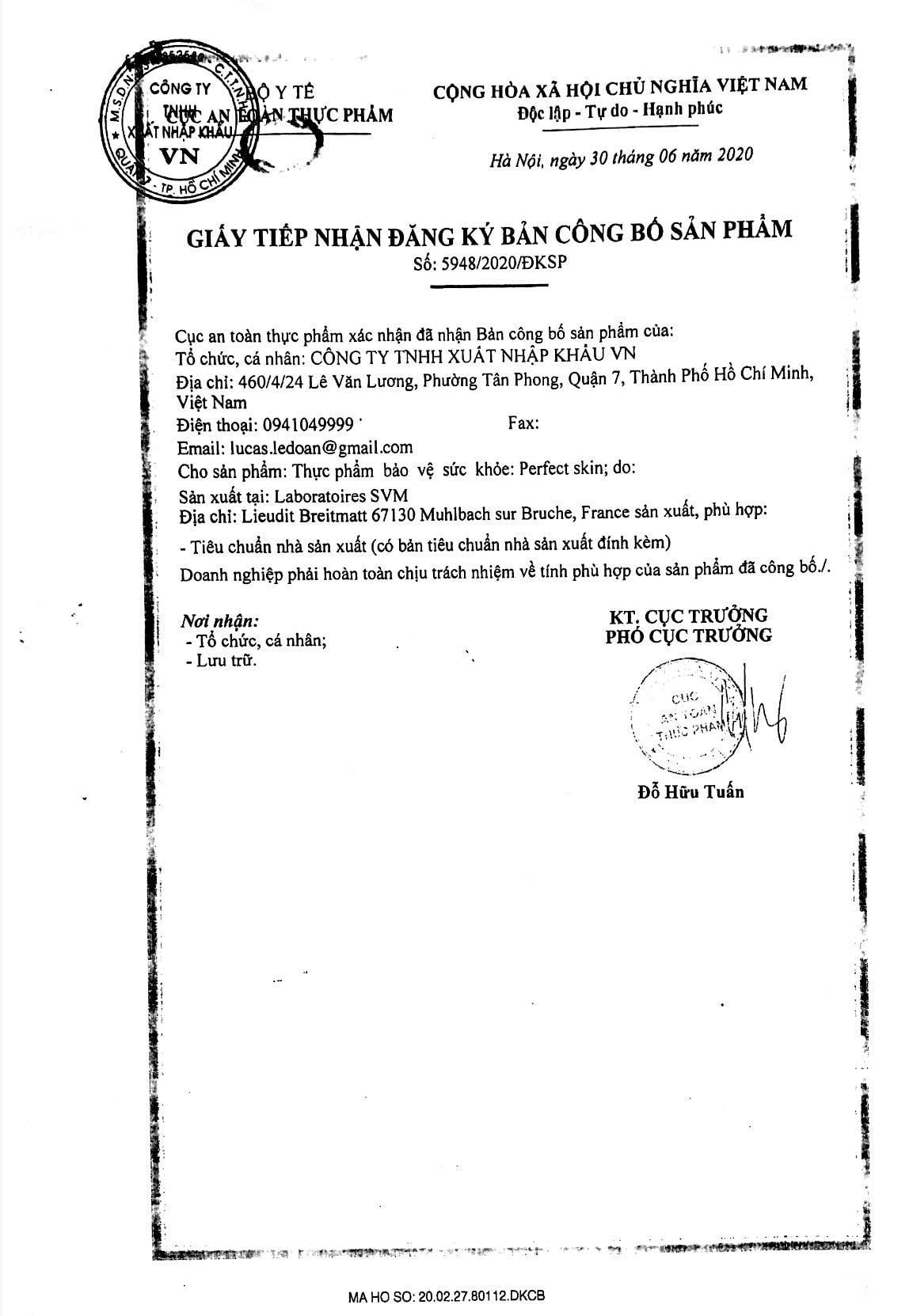 Công bố hợp qui hàng nhập khẩu Laura Sunshine Perfect Skin