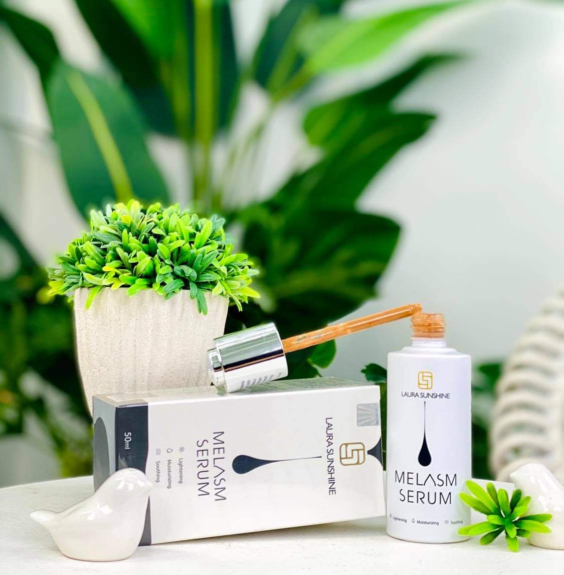 Laura Sunshine Melasm Serum sản phẩm thoa ngoài da, làm mờ, tan và giảm các vết thâm nám, sạm, làm sáng và đều màu da.